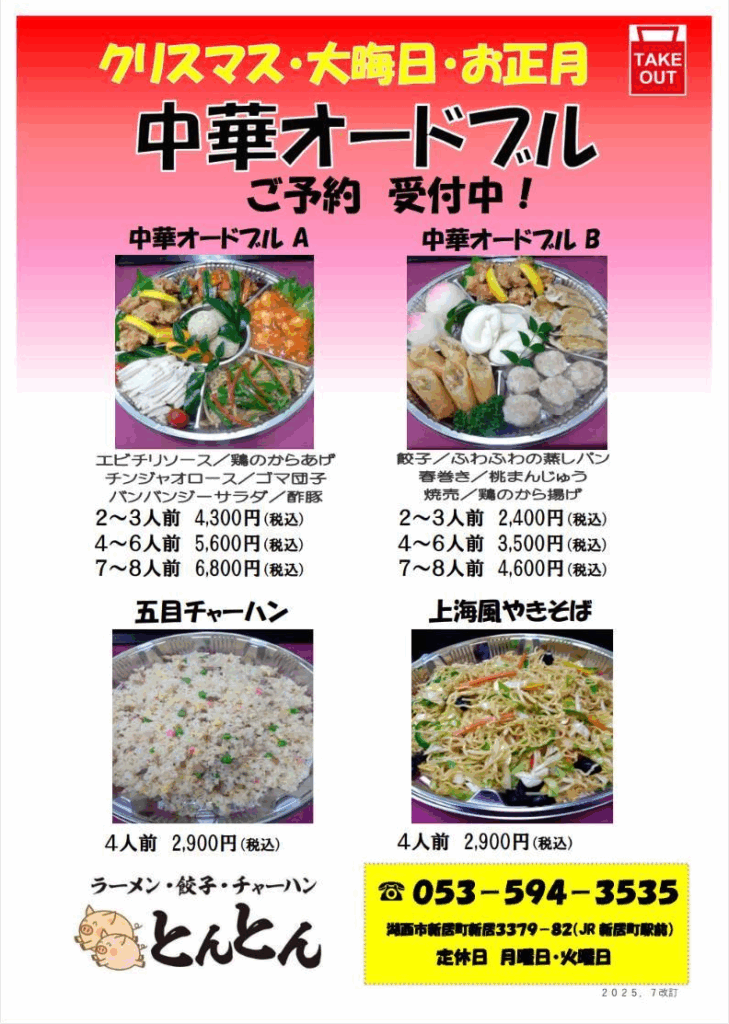 | 上海風やきそば(4人前) | 2,900円(税込) |